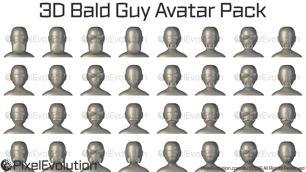 3D Bald Guy Avatar Pack