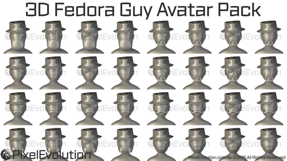 3D Fedora Guy Avatar Pack includes 32 Watermark Free High Resolution (1024 x 1024 px) avatars for only $10.